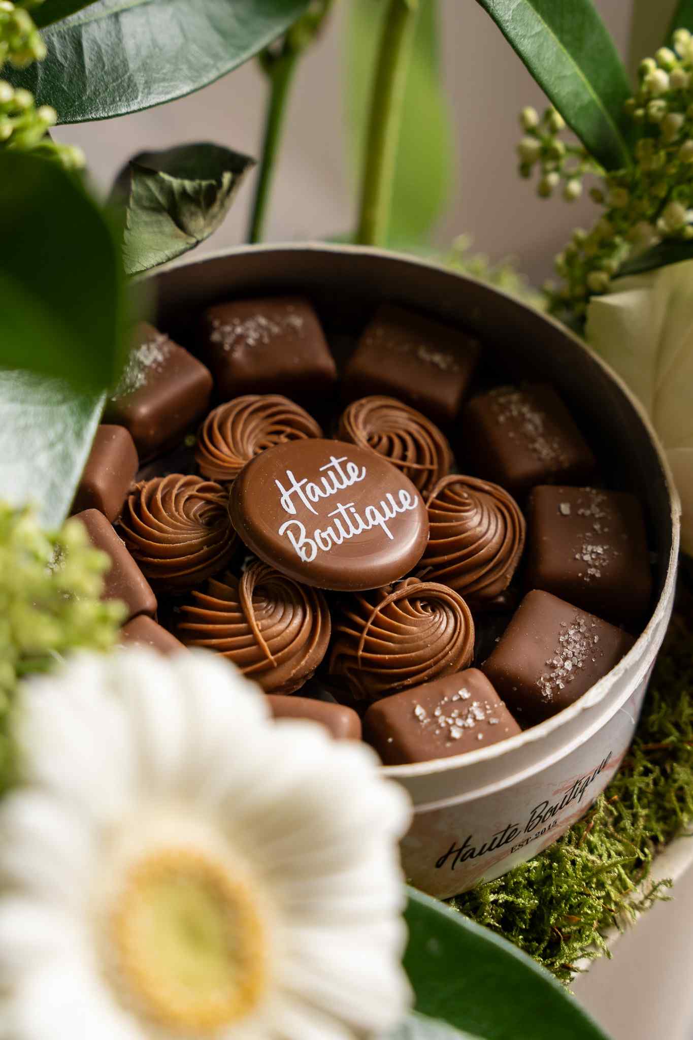 36 of Chewy Caramel + Milk Swirl | 2 Layers | 0.250 kg including a white floral arrangement